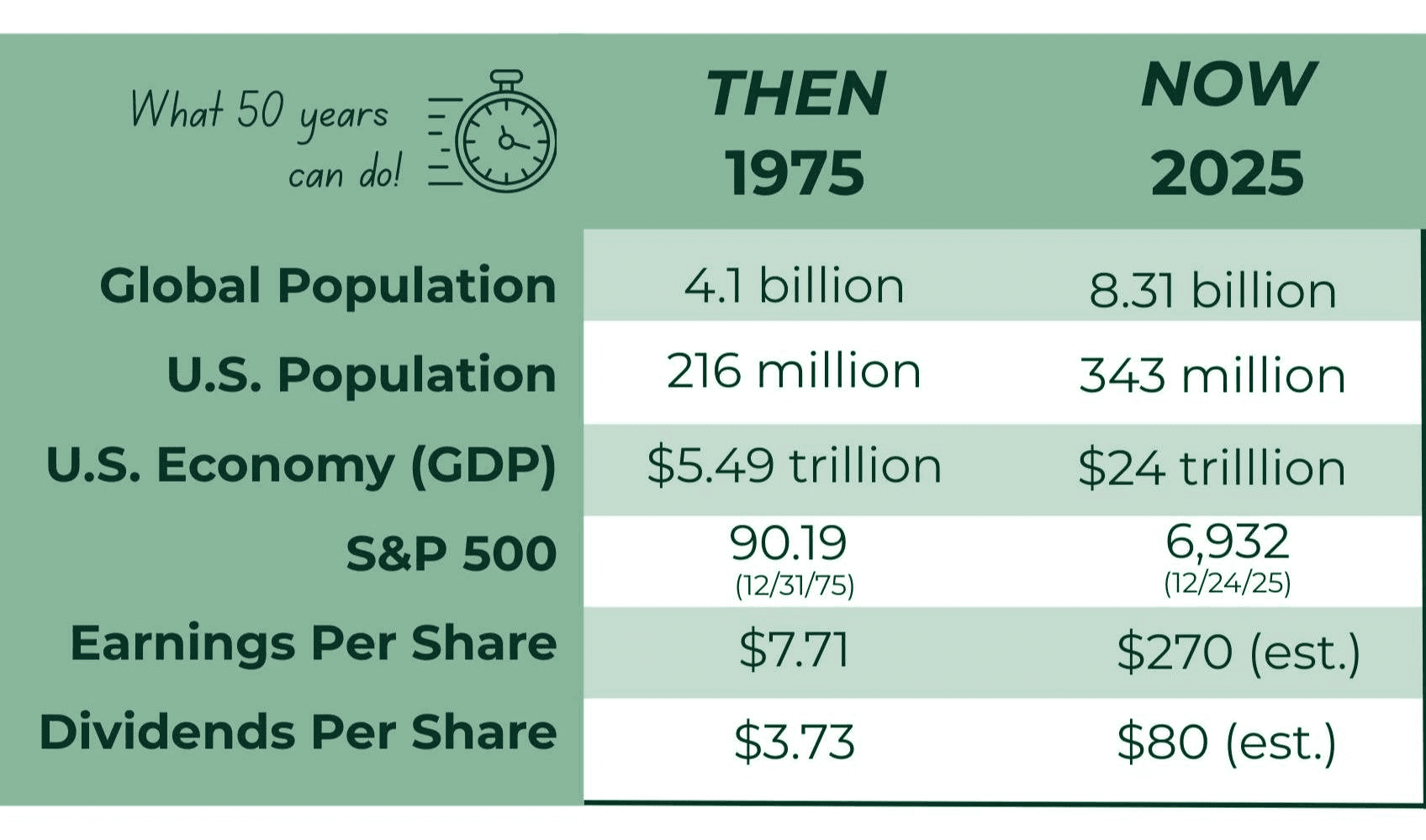 As I've said many times, one of the greatest gifts we advisors can give is the gift of perspective. In this issue, we have lots of perspective for you. Take your time and enjoy the following, which will briefly summarize the astounding progress of the last 50 years.
