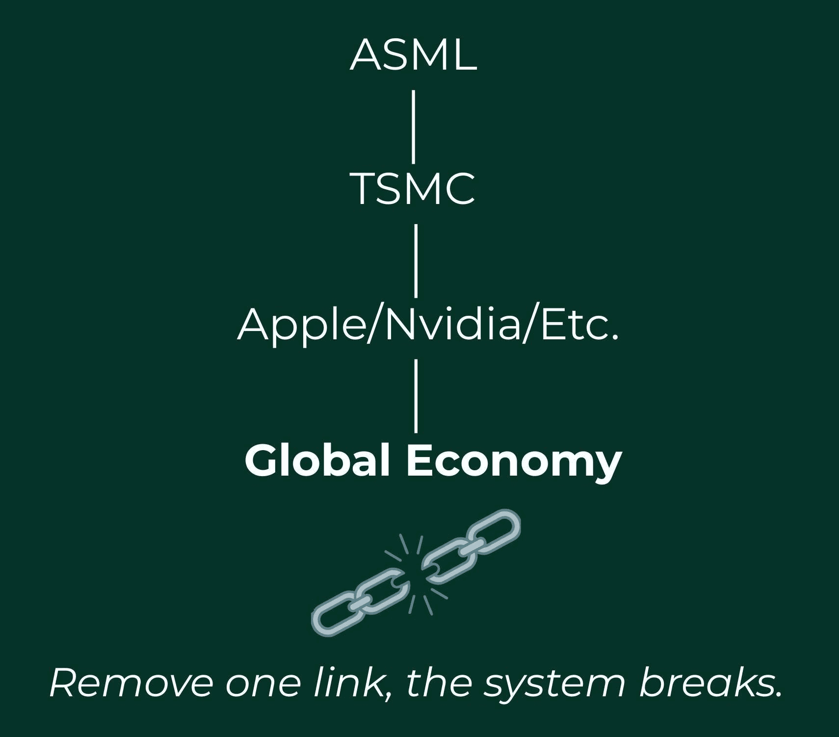 • Then, TSMC purchases that highly specialized equipment from ASML and builds the leading computer chips in the world.